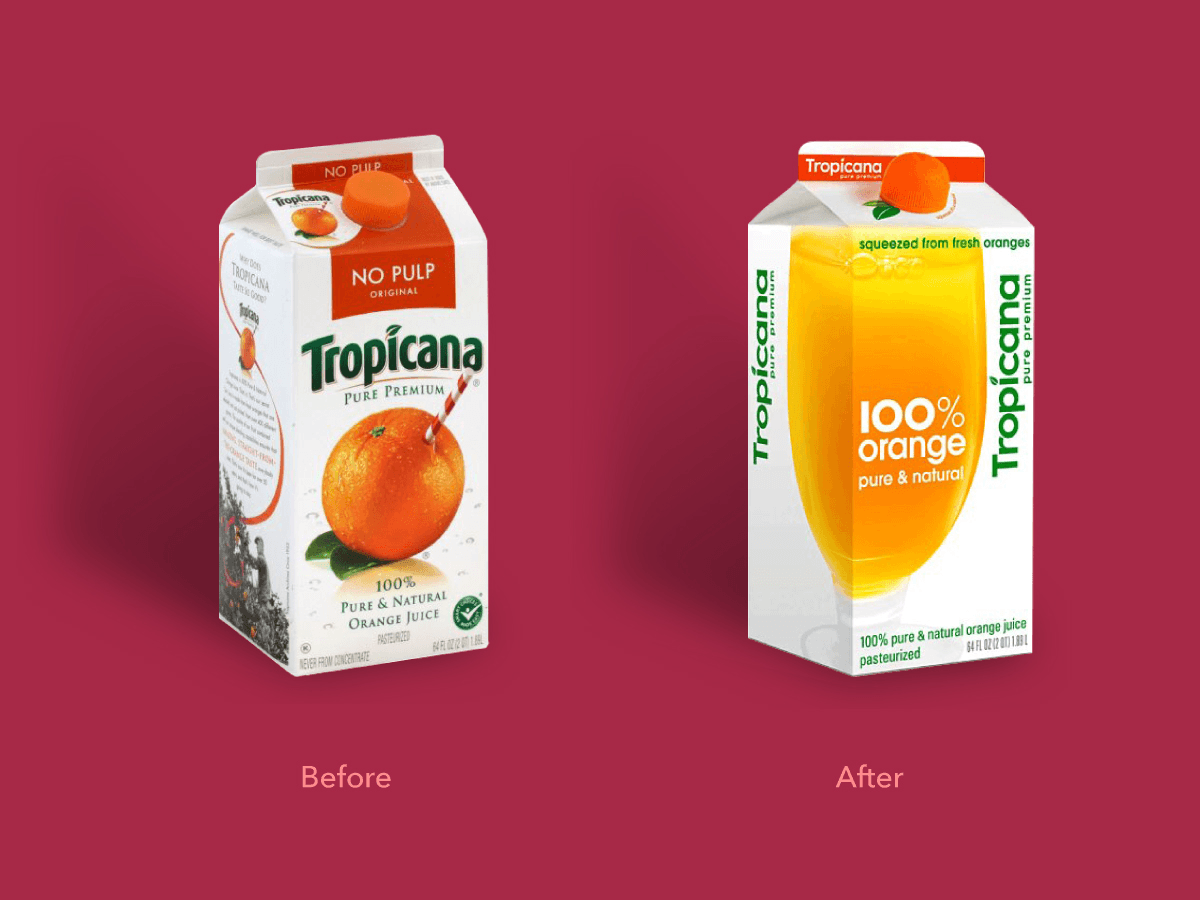 In 2009, Tropicana—a PepsiCo brand—launched a new packaging design for its best-selling orange juice. With a new logo, a new color palette, and a minimalist design style, Tropicana spent $35 million on the design and campaign. The result was a brand crisis accompanied by a 20% drop in sales, costing Tropicana an additional $30 million.