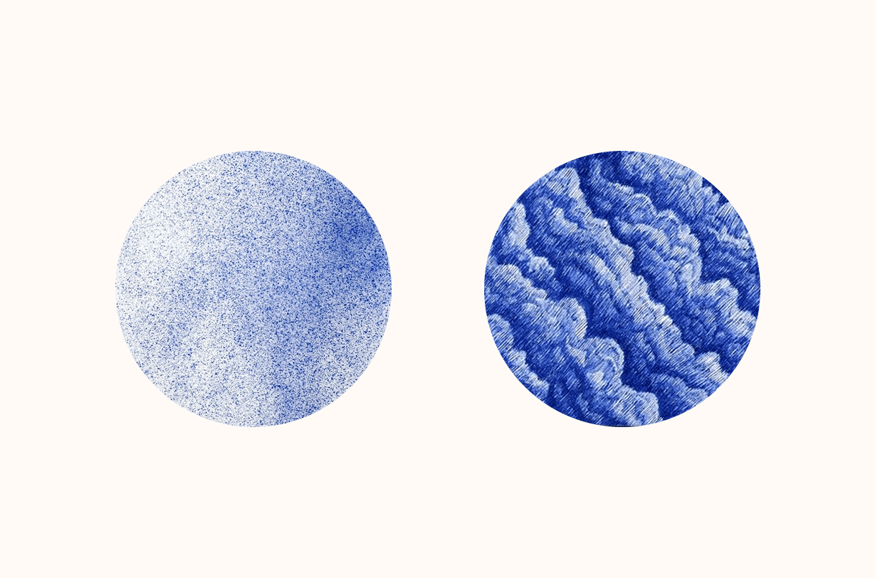 Complexity vs. Simplicity: A dense, intricate texture placed against a smooth, flat surface creates a point of friction.